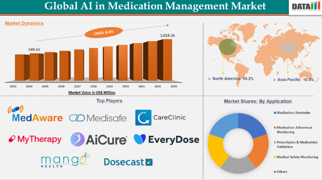 投薬管理におけるAI市場は、デジタルヘルスの利用率の上昇、スマートフォンとインターネット接続の急速な普及、人工知能などの高度な機能を備えたアプリの発売、高度なデータ分析、個人の健康に対する意識の高まりに後押しされた在宅医療需要の高まりなどの要因によって力強い成長を遂げています。