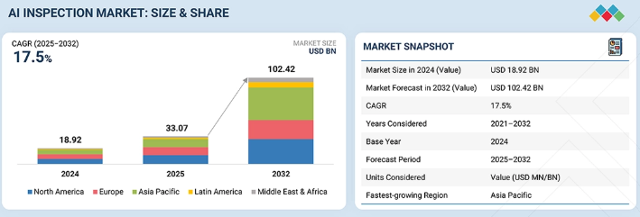 世界のAI検査市場は2025年に330億7000万米ドルと推定され、2032年までに1024億2000万米ドルに達すると予測されており、予測期間中に年平均成長率(CAGR)17.5%で成長する見込みである。成長は、手動による定期的な保証から、遠隔およびハイブリッドモデルを通じて提供されるAIを活用した試験、検査、認証への移行によって推進されている。需要が最も高い分野は、品質・プロセス保証、規制・コンプライアンス管理、資産健全性管理、サイバーセキュリティ・データ保証、持続可能性・ESG監査である。導入を牽引するのは、証拠収集・報告・意思決定の自動化を実現するコンピュータービジョン、機械学習・分析、自然言語処理(NLP)技術である。