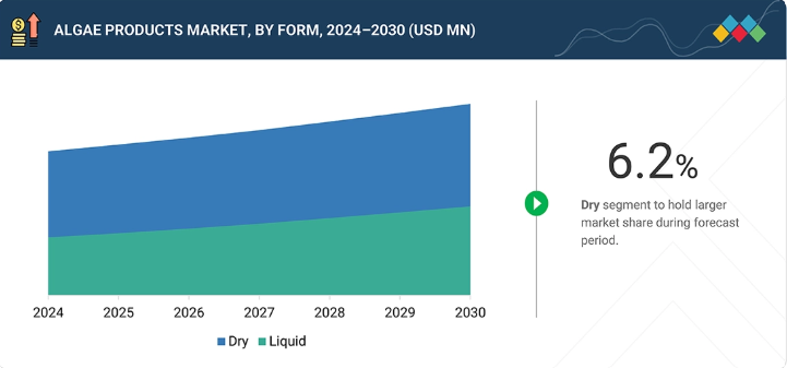 藻類製品市場、形態別(市場規模と2030年までの予測-百万米ドル及びキロトン)