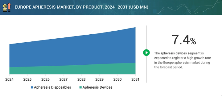 欧州アフェレーシス市場、製品別(市場規模と2031年までの予測 – 価値ベース:百万米ドル、数量ベース:千単位)