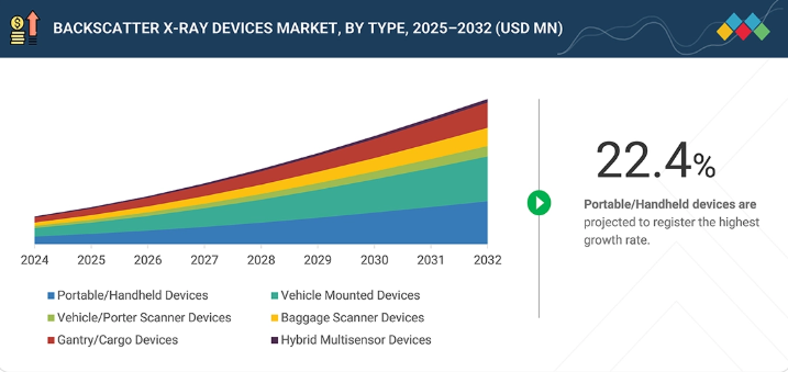 バックスキャッタX線装置市場への影響は、セキュリティ近代化プログラムの増加、検査要件の厳格化、高効率イメージング技術の進歩によって形作られています。今後4~5年で、製品ポートフォリオは従来の単一ビュー型バックスキャッタ装置から、リアルタイム分析を統合した先進的なデュアルモード、AI強化型、モバイルバックスキャッタシステムへと進化すると予想されます。この移行を推進する2つの主要トレンドは、より深い透過性と物質識別を実現するハイブリッド型(バックスキャッター+透過型)アーキテクチャの急速な採用、および脅威の自動検知・異常識別・ワークフロー最適化のためのAI/MLベース画像解析ツールの統合である。これらの革新により、税関・国境検問所、法執行機関、航空貨物検査、防衛施設、産業重要インフラにおいて、より迅速・正確・自動化された検査プロセスが実現している。高エネルギーバックスキャッタシステム、堅牢なモバイルプラットフォーム、自動スキャニングポータルへの移行は、港湾、貨物ターミナル、軍事基地、物流ハブなどの高リスク環境において、運用スループットの向上、規制順守の強化、セキュリティ態勢の強化にも寄与している。