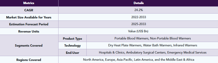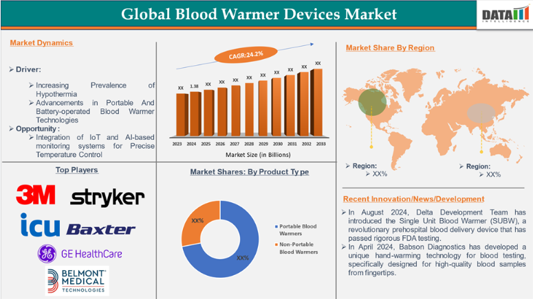 血液加温装置は、患者への投与前に血液や輸液の温度を上昇させる医療機器であり、手術、外傷治療、または大量輸血時の低体温症を予防します。これにより、輸液を患者の体温に合わせることができ、心不整脈や凝固障害などの合併症を軽減します。これらの装置は、患者の安全性を高め、臨床転帰を改善するために、病院、救急医療サービス、軍事施設、および集中治療室で広く使用されています。