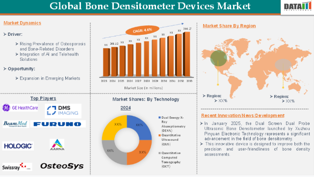 骨密度測定装置市場における世界的な主要企業には、GE Healthcare、Hologic, Inc.、Swissray、DMS Group、BeamMed Ltd.、OSTEOSYS Corp.、FURUNO ELECTRIC CO., LTD.、Pinyuan Medical、CyberLogic, Inc.、Aarna Systems and Wellness Pvt. Ltd.などが挙げられます。