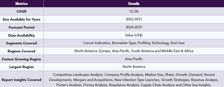 全セグメントを含むがんバイオマーカー市場レベルの豊富なデータポイントを有するExcelデータシート。