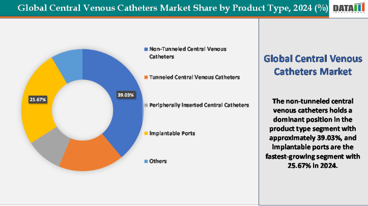 非トンネル型中心静脈カテーテルセグメントが中心静脈カテーテル市場を支配し、2024年のシェアは39.03%。