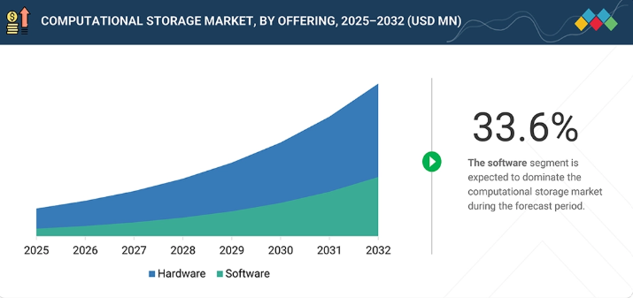 コンピューテートストレージ市場は、AI、ビッグデータ分析、電力制約のあるデータセンター環境の急速な成長に牽引され、構造的変化を経験しています。従来のストレージ中心の収益モデルは、データに近い処理を可能にするプログラマブルでインテリジェントなストレージアーキテクチャへと進化しています。この変革により、高度なコンピューテーショナル・ストレージデバイス、ソフトウェアプラットフォーム、クラウド中心のソリューションを通じた新たな収益源が創出されています。今後7~10年間で、この移行はシステム効率の向上、総所有コストの削減、データ集約型コンピューティング環境全体でのパフォーマンス加速をもたらすと予想されます。