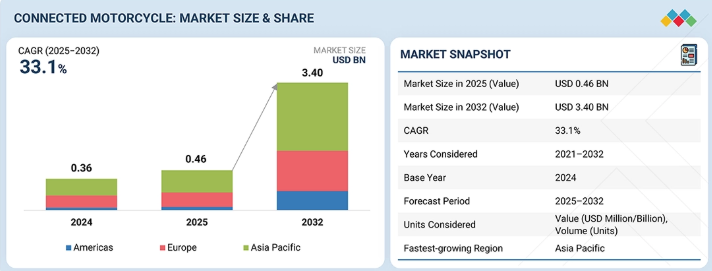 世界のコネクテッドモーターサイクル市場は、2025年の4.6億米ドルから2032年には34.0億米ドルに成長すると予測されています。コネクテッド・モーターサイクル市場は、33.1%という高い年平均成長率を記録する見込みです。同市場は、eCallやサイバーセキュリティ基準などの義務化された規制、ライダーの安全性向上に対する期待の高まり、電動バイクの台頭という3つの主な要因の影響を受けています。BMWやドゥカティのようなプレミアムブランドは、レーダーアシストライダーエイドやOTA(Over-the-Air)アップデートのような先進技術の先陣を切っていますが、ホンダやAtherのようなアジアブランドは、緊急通報サービスのようなエントリーレベルのコネクティビティを主流にしています。二輪車の電動化が進むことで、バッテリーの健全性やインテリジェント充電にコネクティビティが不可欠となり、このトレンドも後押ししています。アジア太平洋地域が市場を支配し、中国とインドが大量導入の先陣を切っています。一方、欧州は規制の整備を進めています。2032年までに、二輪車はコネクティビティでスクーターを凌駕し、高度な機能の実験場となる可能性が高く、それはいずれエントリーレベルの二輪車にも導入されるでしょう。OEMや業界プレーヤーにとって、この変化は、今後数年間で、ハードウェア・ビジネスからサブスクリプション・ベース・ビジネスへの転換を示唆しています。また、予知保全や利用ベースの保険のようなサービスへのシフトも示しています。今後数年間で、コネクテッド・モーターサイクルは将来のモビリティ・インフラの不可欠な一部となることが予想されます。
