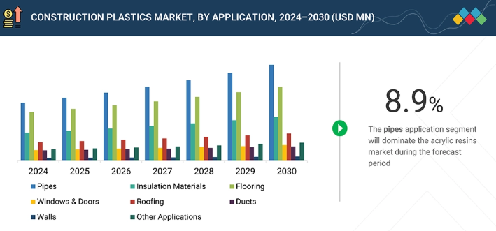 建設用プラスチック分野は、PVC、PE、PP、PS、PU、PCなどの建設用プラスチックで構成されています。PVCは最も優れたプラスチックの1つと認識されており、耐久性と耐薬品性に優れているため、一般的に配管、窓、屋根などに利用されています。PEとPPは軽量で耐食性に優れており、これらの特徴から配管や断熱材用途によく選ばれています。確立された製造能力、原材料の入手可能性、競争力が、特定地域における各種プラスチックの市場プレゼンスに寄与しています。