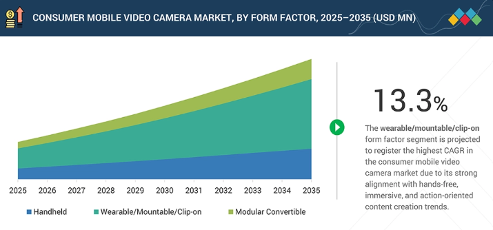 複数のトレンドと技術的変革が、消費者向けモバイルビデオカメラ市場における顧客の業務形態を再構築し、ユーザーが動画コンテンツを撮影、編集、管理、配信する方法を転換しています。ソーシャルメディア、動画ブログ、ライブストリーミング、ショートフォーム動画の急速な成長が、携帯性に優れ、高品質で使いやすいカメラの需要を牽引しています。メーカー各社は、ハードウェア中心のモデルから、AI機能、コンパニオンアプリ、クラウドストレージ、サブスクリプション型編集ツールを組み込んだソフトウェア・サービス主導のエコシステムへと移行しています。AI、計算処理による画像処理、エッジコンピューティング、クラウド接続により、リアルタイム手ぶれ補正、自動フレーミング、低照度補正、即時編集、シームレスな共有が可能になりました。これらの進歩は、移動性、速度、プラットフォーム互換性、データ駆動型の洞察を求め、エンゲージメントを最大化しようとするクリエイターを支援します。