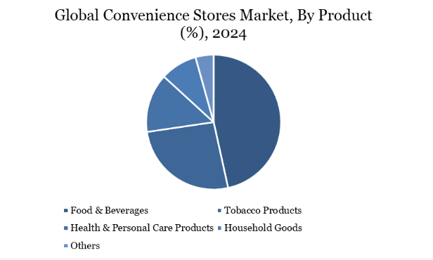 2024年のタバコ製品の市場規模は1,977億米ドルで、世界市場の約30%を占めます。世界的なニコチン中毒の増加や地域の施設でのタバコ製品の普及により、タバコ製品は引き続きコンビニエンスストア部門を支配しています。特にタバコは、他のコンビニエンスストア商品よりも販売量が多く、事業収益を押し上げています。この傾向に拍車をかけているのが、コンビニエンスストアで広く販売されているタバコやその他のタバコ製品に対する継続的な需要であり、世界中の様々な企業にとって主要な収益源となっています。