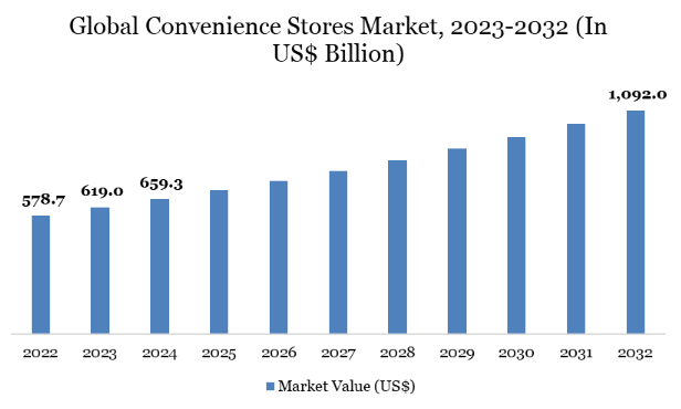 世界のコンビニエンスストア市場は、2024年に6,593億2,000万米ドルに達し、2032年には1兆9,092億2,000万米ドルに達すると予測され、2025年から2032年の予測期間中の年平均成長率は6.51%で推移すると予測されています。