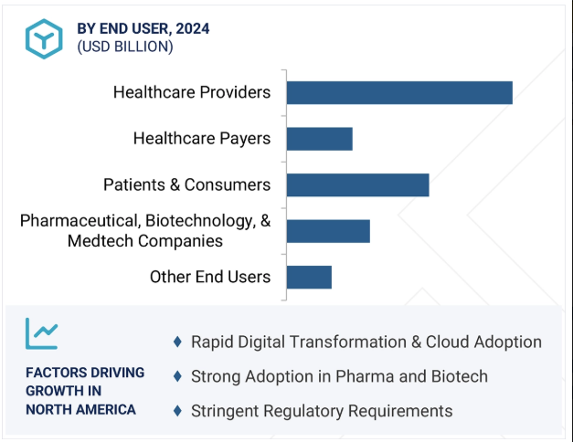 2024年のエンドユーザー別シェアでは、医療機関が最大を占めると推定。病院、診療所、専門医療センターでは、電子カルテ(EHR)、遠隔医療プラットフォーム、遠隔患者モニタリングシステム、AI搭載診断ツールの導入が進んでおり、効率性の向上、コスト削減、バリューベースのケアモデルのサポートが求められています。統合ケア、相互運用性、リアルタイムの患者データアクセスの推進は、デジタルヘルス導入に対する政府のインセンティブや規制支援と相まって、医療提供者を市場の主要なエンドユーザー層としてさらに強固なものにしています。