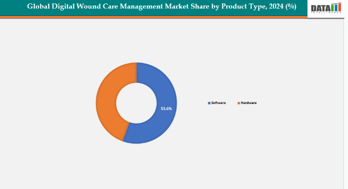 ソフトウェアセグメントは、2024年に53.6%のシェアでデジタル創傷ケア管理市場を支配している