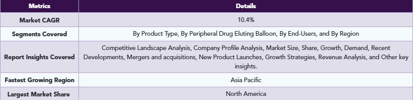 アジア太平洋地域では、中国やインドなどの主要国が薬剤溶出バルーン市場の規模に寄与している。この地域の成長は、冠動脈疾患および末梢動脈疾患における薬剤溶出バルーンの治療的応用に関する認知度向上を目的とした政府主導の複数の施策に起因している。さらに、高齢化人口と多くの外国医療機器企業による投資増加が、同地域における薬剤溶出バルーン市場の成長を促進した。例えば国連によれば、2050年までに中国総人口の約30%が高齢者で構成されると推定されている。インドや中国などの発展途上国では、米国などの先進国と比較して高齢者人口基盤がより大きくなると予想される。例えば、2050年までに60歳以上の人口は、米国が1億700万人ののに対し、中国では4億3700万人、インドでは3億2400万人に達すると予測されている。したがって、この地域では薬剤溶出バルーンデバイスの需要が増加しており、市場の成長につながっています。