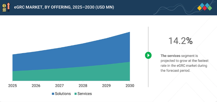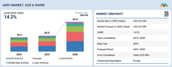 eGRC市場は、2025年の205億6000万米ドルから2030年までに399億9000万米ドルに達すると予測されており、年平均成長率(CAGR)は14.2%となる見込みです。eGRC市場の成長は、世界的な規制の強化、急速に進化するサードパーティエコシステム、サイバーリスクやデータプライバシーリスクへの注目の高まりなど、複数の要因によって推進されています。投資家、顧客、規制当局から、ガバナンスとコンプライアンスにおける透明性と説明責任への期待が高まっています。組織は、断片化された手動のコンプライアンスプロセスから、すべての業務機能にわたる集中化されたリスク可視化、継続的なコンプライアンス監視、監査対応レポートを提供する統合型eGRCプラットフォームへと移行しつつあります。