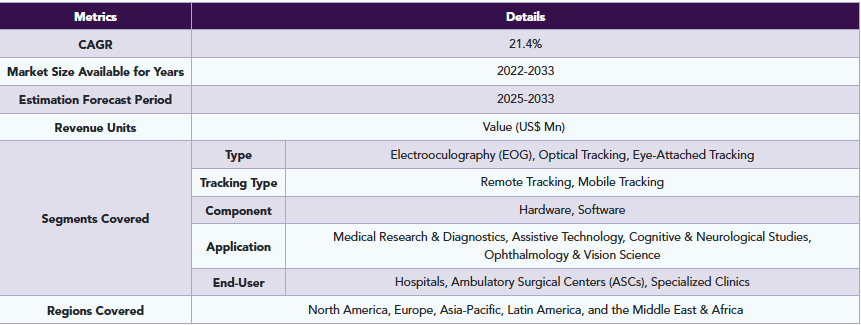 世界の医療用アイトラッキング市場は、タイプ、トラッキング方式、コンポーネント、用途、エンドユーザー、および地域に基づいてセグメント化されています。