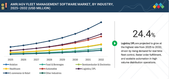 倉庫、工場、物流拠点、ECフルフィルメントセンターにおける移動ロボットの活用拡大に伴い、AMR/AGVフリート管理ソフトウェア市場は急成長が見込まれる。より迅速かつ正確な資材運搬への需要の高まりが、経路設定、トラフィックフロー、タスク割り当て、リアルタイムフリート可視化を調整するソフトウェアプラットフォームの導入を促進している。AI駆動の最適化、予知保全、クラウドベース制御の進歩により、効率性、拡張性、フリート全体のパフォーマンスが向上している。業界がコスト削減とスループット向上のために自動化を加速する中、フリート管理ソフトウェアは、接続された高生産性ロボットオペレーションの重要な実現手段となりつつある。
