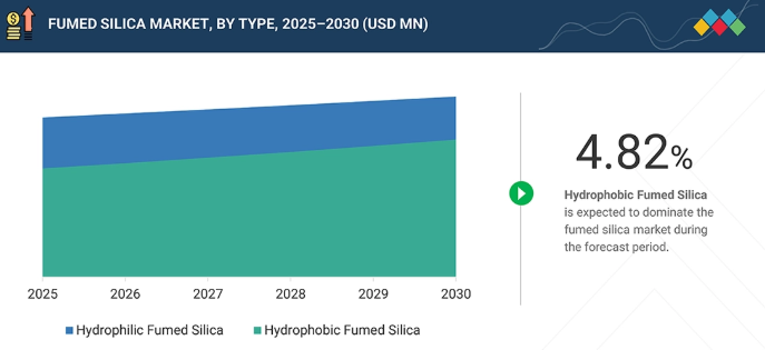 種類別では、疎水性ヒュームドシリカセグメントが、2025年から2030年にかけて、金額ベースで4.82%という最も高いCAGRを記録すると予想されます。