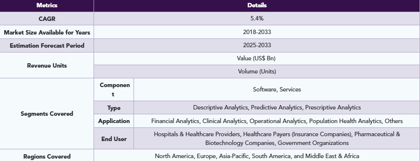 ヘルスケアアナリティクスの世界市場は、コンポーネント、タイプ、アプリケーション、エンドユーザー、地域によって区分されます。