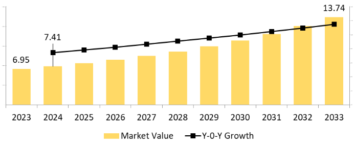 世界の血液学市場は、2024年の74億1,000万米ドルから2033年までに137億4,000万米ドルへ成長し、予測期間中に年平均成長率(CAGR)7.1%を記録すると予測されています。血液学市場の成長は主に、これらの疾患の有病率の増加と、高度な診断機器、試薬、消耗品への需要によって牽引されています。製薬企業も疾患検出と患者転帰の改善に向け研究開発に投資している。