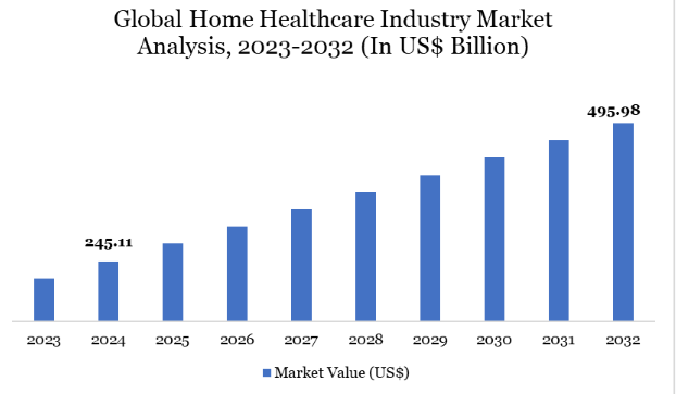 世界の在宅医療産業の市場規模は、2024年に2,451億1,000万米ドルに達し、2032年には4,959億8,000万米ドルに達すると予測され、予測期間2025-2032年の年平均成長率は9.21%で推移すると予測されています。