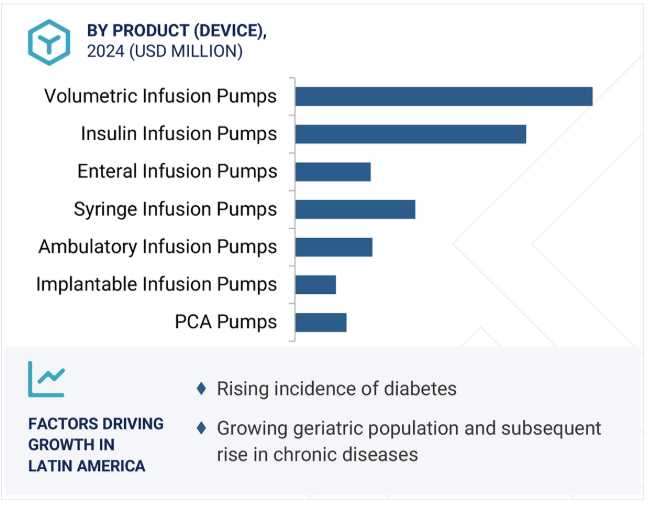 ラテンアメリカの輸液ポンプ市場:製品別