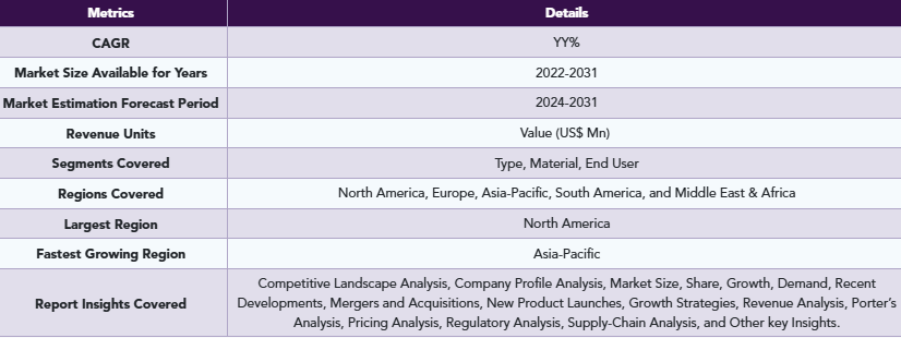世界の眼内レンズ市場は、タイプ、素材、エンドユーザー、地域によって区分されます。