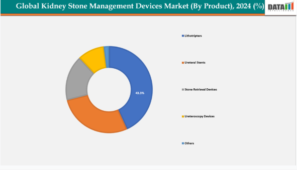 製品別では砕石機セグメントが腎結石管理機器市場を支配し、2024年には43.3%のシェアを占める
