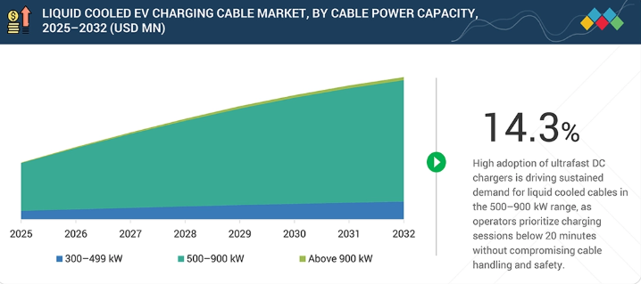350 kW DC充電器の標準化が、300~499 kWケーブルシステムの普及を促進する要因となるでしょう。