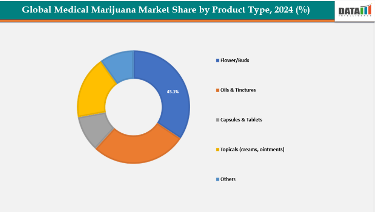 製品タイプ別では、花/芽セグメントが2024年に最大の収益シェア45.1%で市場をリードした。
