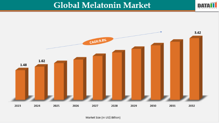 世界のメラトニン市場は2023年に16億2000万米ドルに達し、2024年には90億6700万米ドルに増加。2032年までに34億2000万米ドルに達すると予測され、2025年から2032年にかけて年平均成長率(CAGR)9.8%で成長する見込み。
