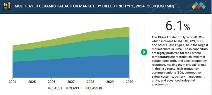 誘電体タイプセグメントにはクラスI、クラスII、クラスIII MLCCが含まれる。クラスI MLCCは優れた安定性、低誘電損失、最小限の温度係数により市場を支配している。一貫した性能と信頼性が重要な通信、自動車、医療、産業分野の精密用途で優先的に採用される。