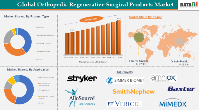 整形外科再生外科製品市場の主要グローバル企業には、Stryker、Zimmer Biomet、AlloSource、Amniox Medical, Inc.、Smith & Nephew、Baxter、Vericel Corporation、MIMEDXなどが含まれる。