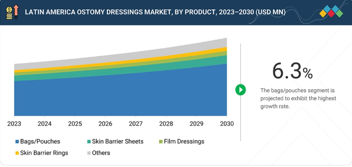 ラテンアメリカ人工肛門用ドレッシング市場における顧客の顧客に影響を与えるトレンドと変革は、患者の治療成果向上、ケア効率化、長期的な疾患管理に焦点を当てています。装着時間の延長、漏出の低減、ストーマ周囲皮膚合併症の軽減を実現する先進的なパウチングシステムや皮膚バリア技術が、病院、専門クリニック、在宅ケア提供者において利用可能になりつつあります。早期退院と在宅ケアへの移行は、体系的な患者教育を背景に、使いやすく最小限のメンテナンスで済むオストミー用ドレッシングの需要を促進しています。がんや炎症性腸疾患の症例増加は手術件数の増加と製品使用期間の長期化をもたらしており、耐久性と皮膚保護性を兼ね備えた製品への注目が高まっています。高齢化は慢性オストミー患者層の拡大に寄与しています。さらに、地域ごとの規制の明確化と製品標準化の進展により、革新的なオストミー用ドレッシングの採用が加速し、ラテンアメリカ全域で購買行動の変化や、品質・信頼性・継続的なケアへの期待が高まっています。