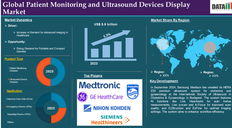 患者モニタリングおよび超音波診断装置のディスプレイ技術は、患者のバイタルサインや体内状態をリアルタイムで可視化するため、現代の医療において不可欠なものです。これらの装置は、高度なディスプレイシステムを用いて詳細な画像やデータを表示し、医療従事者が迅速かつ的確な判断を下せるようにします。患者モニタリング用ディスプレイは心拍数、血圧、呼吸数、酸素飽和度などのバイタルパラメータを追跡し、超音波診断用ディスプレイは内臓、組織、血流を可視化します。技術革新、患者中心のケア、新製品の発売、およびその他の様々な要因により、これらの機器の市場は拡大を続けています。