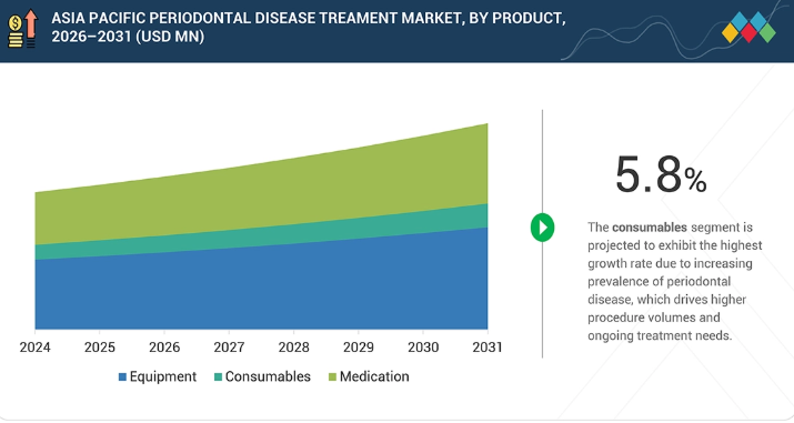 アジア太平洋地域の歯周病治療市場、製品別(市場規模および2031年までの予測 – [金額(百万米ドル)および数量(単位)] 2023年から