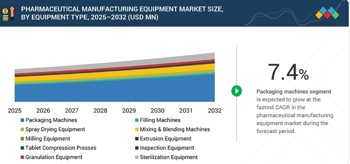 医薬品製造装置市場は、従来の錠剤・液剤処理システムから、バイオ医薬品処理、AIベースの検査、細胞・遺伝子治療装置といった先進的ソリューションへと移行しています。製薬企業、CDMO、ワクチンメーカーからの需要が、装置プロバイダーに新たな成長機会を生み出しています。各社は生産効率の向上とコスト削減のため、自動化、デジタル統合、コンプライアンス重視のシステムに注力しています。これらの動向は、より迅速な医薬品開発と拡張性の高い製造オペレーションを支えています。