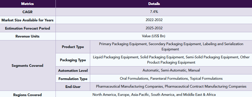 DataM Intelligenceのレポートによると、世界の医薬品包装機器市場は2024年に97億9,000万米ドルに達し、2032年までに162億4,000万米ドルに達すると予想されています。2025年から2032年の予測期間中は、年平均成長率(CAGR)7.4%で成長すると見込まれています。