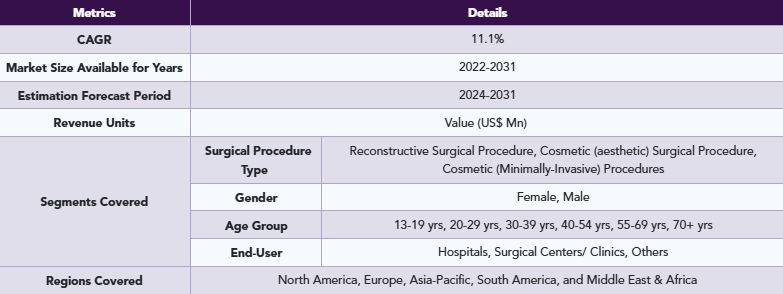 世界の美容整形市場は、手術の種類、性別、年齢層、エンドユーザー、地域に基づいてセグメント化されている。