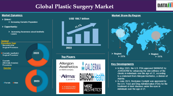 さらに、高齢化人口の増加、低侵襲手術の普及、施術費用の低減、市場における認可サービス提供者の増加、新製品発売数の増加により、これらの形成外科手術に対する消費者需要が高まっており、形成外科市場規模を押し上げています。北米地域における研究の発展に伴い、同地域からの製品需要が拡大している。アラーガン・エステティックス(アッヴィ社)、メルツ・エステティックス、サイノシュア社などの主要競合企業が市場で活発に活動中。