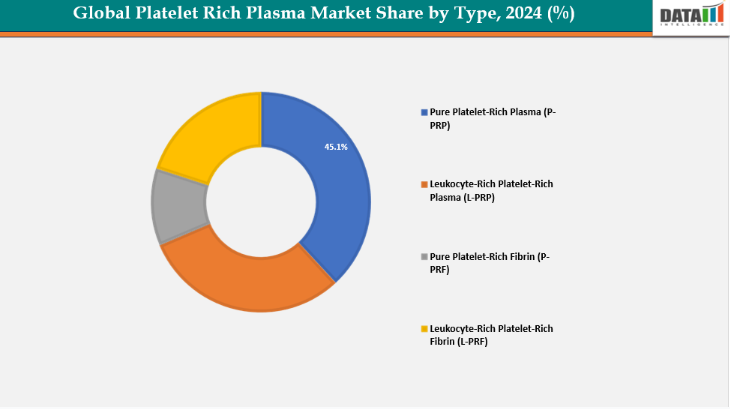 タイプ:タイプ別セグメントでは、純粋な血小板濃縮血漿(P-PRP)が2024年に45.1%のシェアで血小板濃縮血漿市場を支配すると予測される