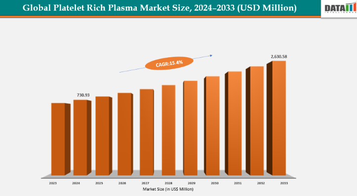 世界の血小板濃縮血漿(PRP)市場規模は2024年に7億3,093万米ドルに達し、2033年までに26億3,058万米ドルに達すると予測されています。2025年から2033年の予測期間における年平均成長率(CAGR)は15.4%と見込まれています。世界的な血小板濃縮血漿市場の主要な推進要因の一つは、筋骨格系疾患およびスポーツ関連損傷の有病率増加である。アクティブなライフスタイルの普及、プロスポーツへの参加増加、高齢化に伴い、変形性関節症、腱炎、靭帯損傷、関節変性などの疾患発生率が著しく上昇している。PRP療法は、コルチコステロイド注射や手術といった従来法と比較して自然治癒を促進し回復期間を短縮する有望な非外科的治療選択肢として台頭している。