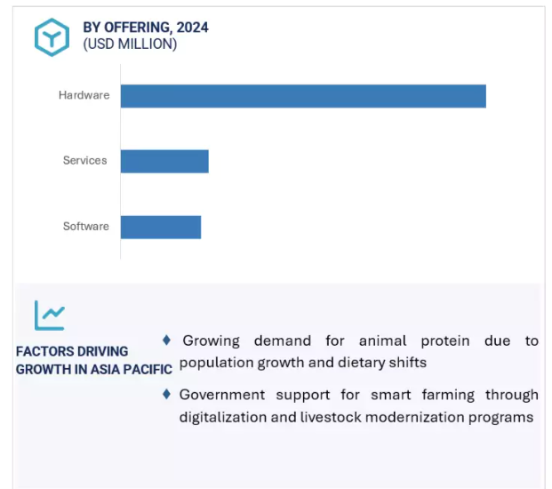ハードウェア、ソフトウェア、サービスを含むオファリングセグメントは、予測期間中に大きなシェアを占めると予測されています。家畜の健康、生産性、資源効率におけるデータ主導型ソリューションへの需要の高まりが、広範な導入につながっています。これらの技術革新は、従来の畜産作業を自動化されたインテリジェントなシステムに変えつつあります。