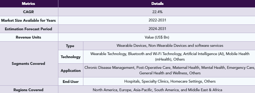 DataM Intelligence社のレポートによると、遠隔患者モニタリングの世界市場は2023年に502億米ドルに達し、2031年には2510億米ドルに達すると予測され、予測期間2024年から2031年にかけてのCAGRは22.4%で成長する見込みです。