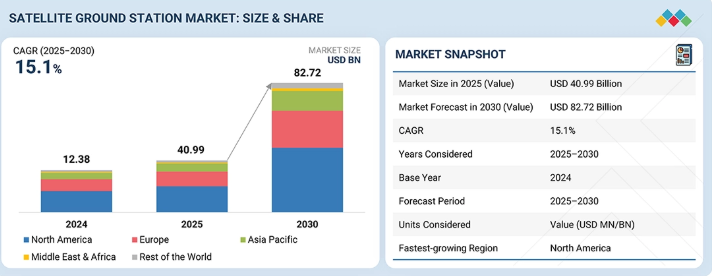 衛星地上局市場は、2025年の409億9000万米ドルから2030年までに827億2000万米ドルに達すると予測されており、2025年から2030年までの年間平均成長率(CAGR)は15.1%となる見込みです。この成長は、マルチオービット衛星コンステレーションの急速な拡大、高スループット接続への需要増加、クラウド統合型ソフトウェア定義地上システムの採用加速によって牽引されています。