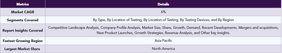 - 市場規模分析、および前年比成長率(%)の分析、検査場所別