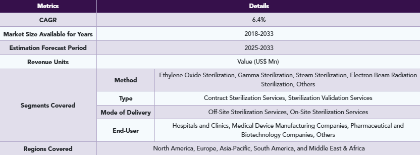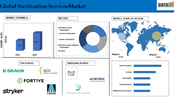 DataM Intelligence社のレポートによると、世界の滅菌サービス市場は2024年に38億米ドルに達し、2033年には65億3,000万米ドルに達すると予測され、予測期間2025-2033年の年平均成長率は6.4%です。