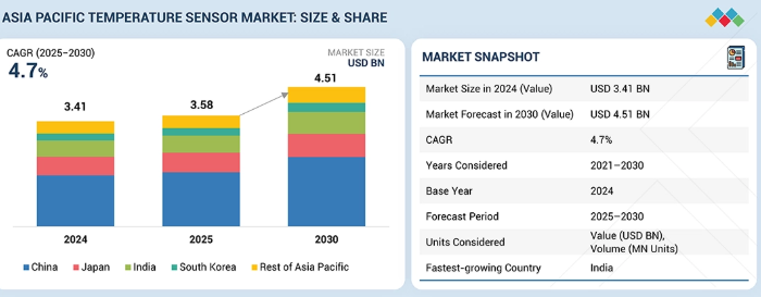 予測期間中、インドがアジア太平洋地域温度センサー市場で最も急速に成長する国となる