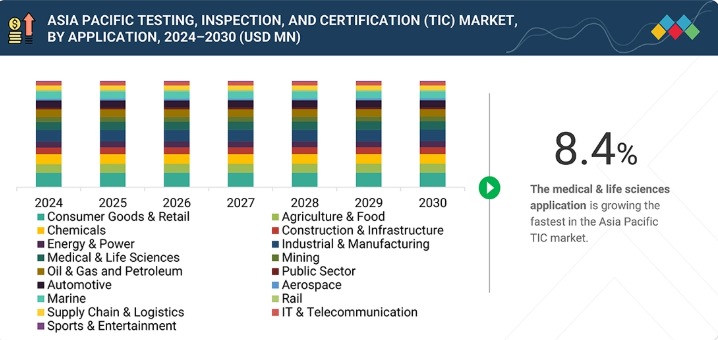 アジア太平洋地域のTIC市場における消費者ビジネスへの影響は、高まるコンプライアンス要求、拡大する産業活動、急速に進化する技術エコシステムに起因する。電子機器、半導体、自動車、医療、消費財企業がTICサービスの主要ユーザーであり、輸出準備と製品安全が重点領域となっている。デジタル検査、AIを活用した試験、遠隔監査、グリーン認証への移行は、エンドユーザーの業務効率とリスク低減に直接影響を与えます。これらの変化は、特にEVバッテリー、半導体信頼性、医療機器、5G/6G機器における高度なTIC能力の必要性を促進し、地域の長期的な成長軌道を形成しています。