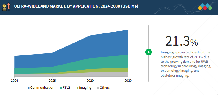 ウルトラワイドバンド市場は、アプリケーション別にRTLS、イメージング、通信、その他にセグメント化されています。UWB技術は、心臓病画像診断、肺炎画像診断、産科画像診断で需要が伸びており、予測期間中、画像診断アプリケーションの市場成長を促進すると期待されています。